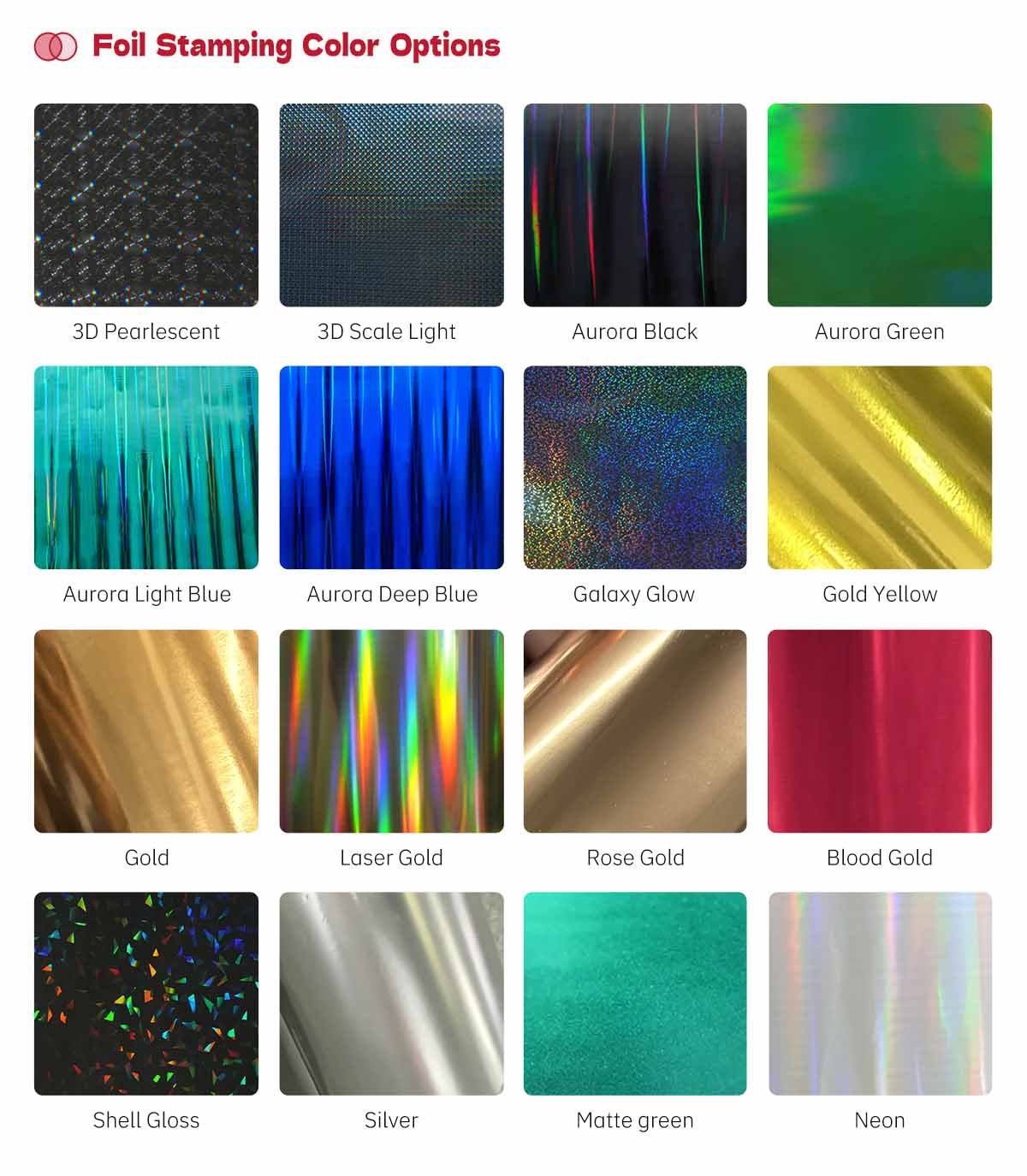 Varied of foil stamping and backing materials.(refer to technique for more details)