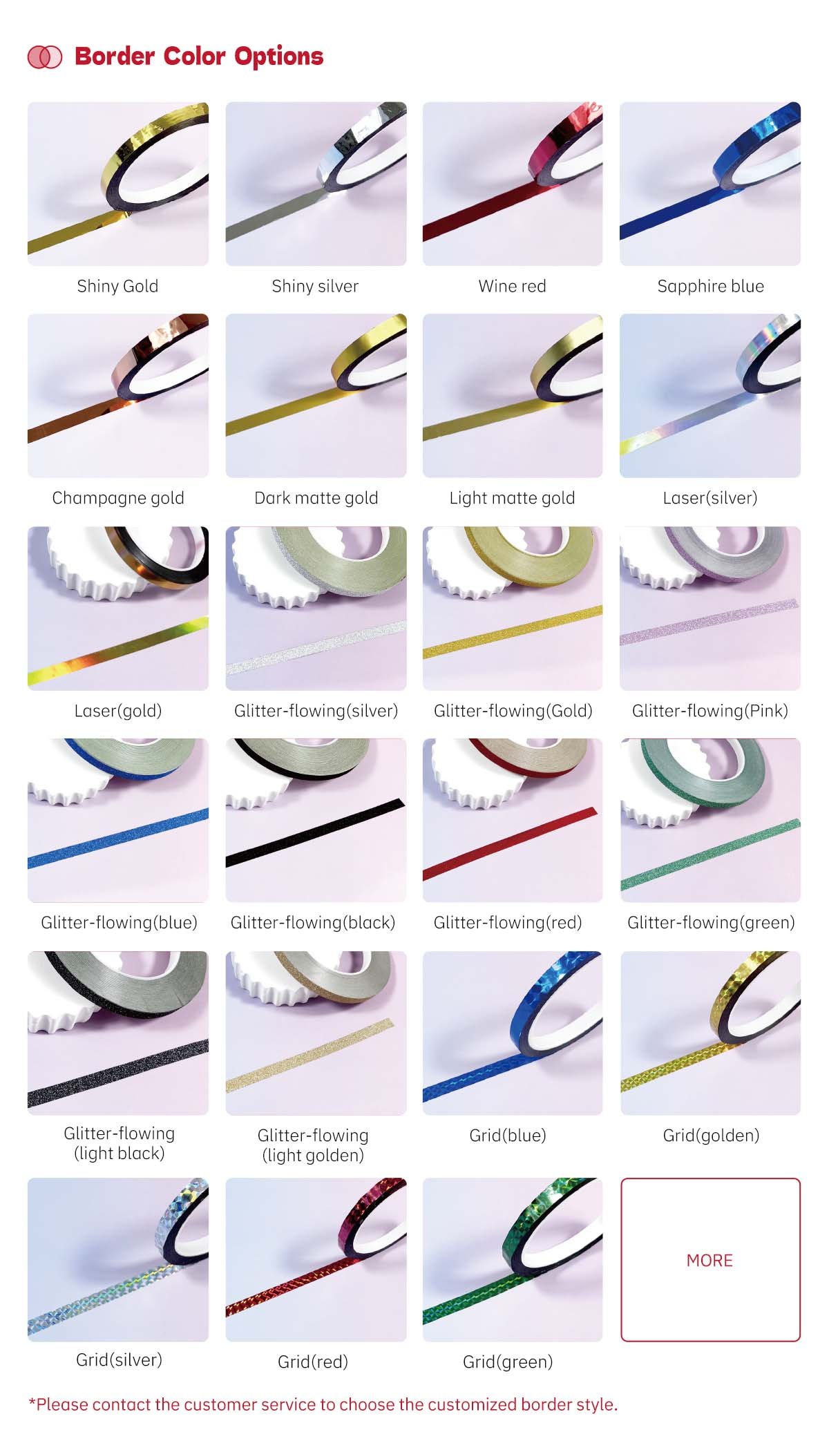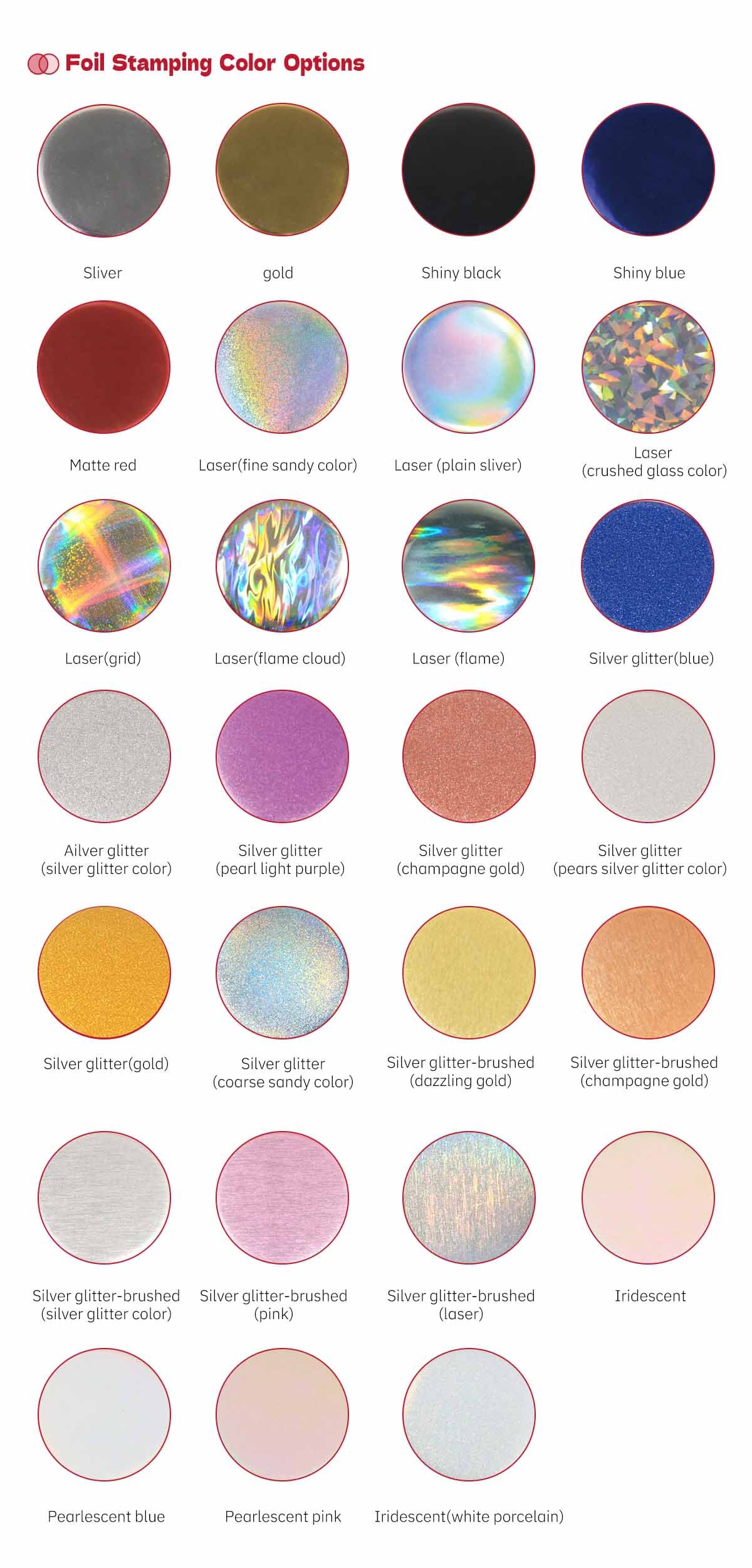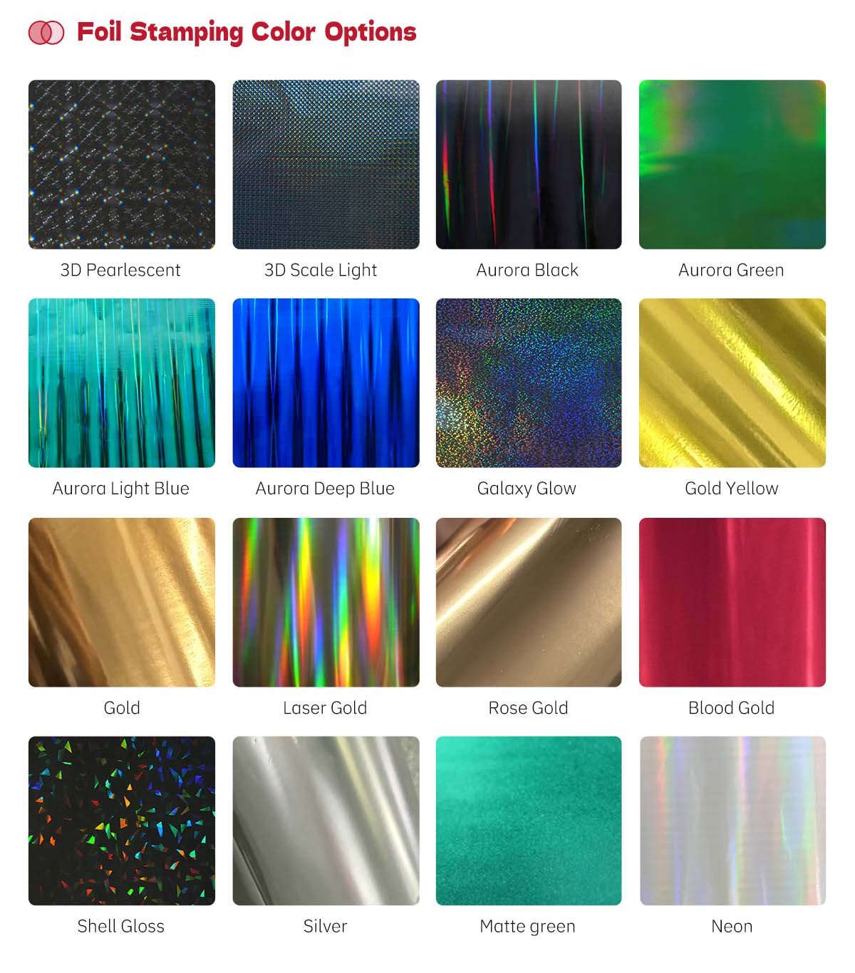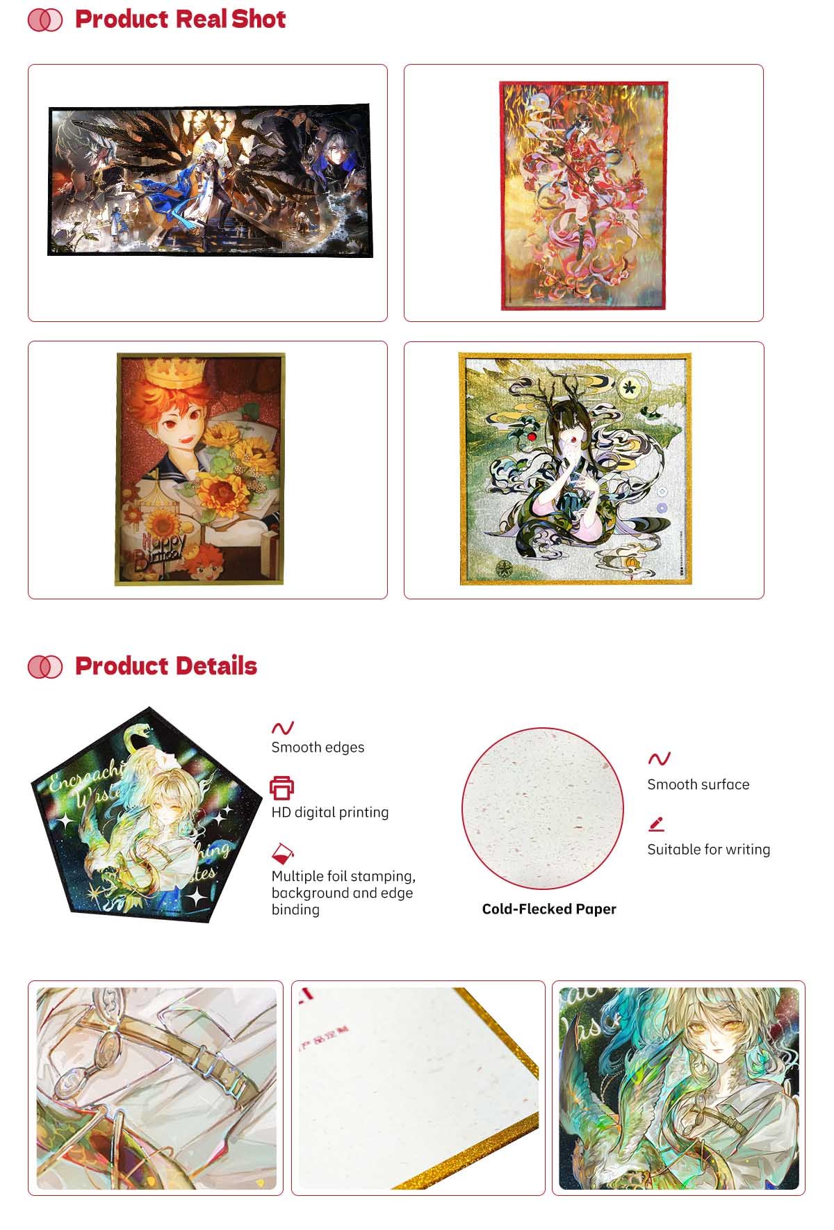 Varied foil stampings, film coverings, drip molding, backgrounds, edge bindings are supported. (refer to technique for more details)